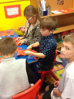 On Wednesday afternoon we all had a shuffle around in order to make some Christmas decorations for our school. In Hedgehog's we were busy making our names look like Father Christmas, creating wreaths that will last for many years using our hands, hand print Rudolph pictures, sparkly stockings and a bit of colouring in. It was lovely to have parents and siblings joining in with us.